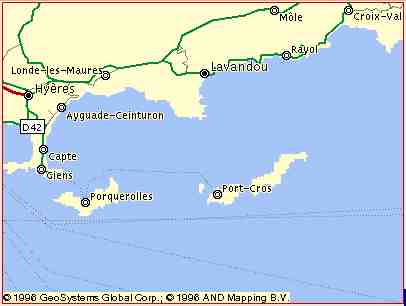 Les Iles d'Hyeres. The islands of gold, are named because of the high concentration of iron pyrites in the area. Every in this region the ground is speckled with gold. I first came to this region after finding about 2 lines in a Let's Go France book which mentioned that Ile du Levant was a naturist colony. This was intriguing, and with only a couple of lines of blurb in the book I was pretty sure this wasn't going to be a big tourist spot.