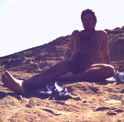 This is a candid shot taken by Claire, one of my friends from England, who I met on the island along with her boyfriend Derek. The background is the port area and I'd just got out from a swim. As you can tell from the tan, I'd already been on the island for a week or two and had lost all my tanlines.